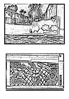 One first must build up a case for using the word "I". There follows a logic--one can't just open a books with admonitions to "do as I do". Consider the I's in this book to be from a source outside any one body. They have inhabited many minds, this I is a ghost without memory, a simple liberated moment, the ghost of the plate glass window shattering, of traversing distance and rapidly flipping through scenes of many existences and moments, one who walks through the city as if they walk above it and who wanders that anaccesible places you might only be able to look at but never visit. My "I" is not like your "I. I am "I and I"- Blur, Riddle, Problem, Ghost, Echo. *** Called "Thoughts on the rash of boganvalia poisonings in my mind (the mind of Eufencio Rojas)" Machine minded plants have begun to monitor those who continually fly over the corridors of the city. I was reading something about the practice of deep meditation and the erasing of time perception... What I have found is that this is all nonsensical when compared to the jump-start that I received from the power beam that was sent straight to the inside of my left thigh from Distant Star Healer. The surge that was sent through my body was comparable to a vast earthquake, rolling, roaring and tearing up land for miles. Time, space, elements were reduced to fractal shapes and sounds. The hair on the back of my head extended out to Long Beach, the stubble on the back of my neck being blended and pulled along with it. The sounds were able to be formed into tangible shapes and these shapes led me to the tunnels of the marionette-like nervous system of Antonio Villaraigosa. From an undisclosed location, I control Antonio, a blind relative of the D.S.Healer. I feel incoherent and spread thin, and city hall and the library tower are poking my skin which is very painful. *** Called "Thoughts on Dia de Los Muertos" Common knowledge holds that Dia de Los Muertos is now over. However, there are at least two events that are never taken into account that dramatically change our calendar, our sacred days and the moments when the portals from the other world open to this one.